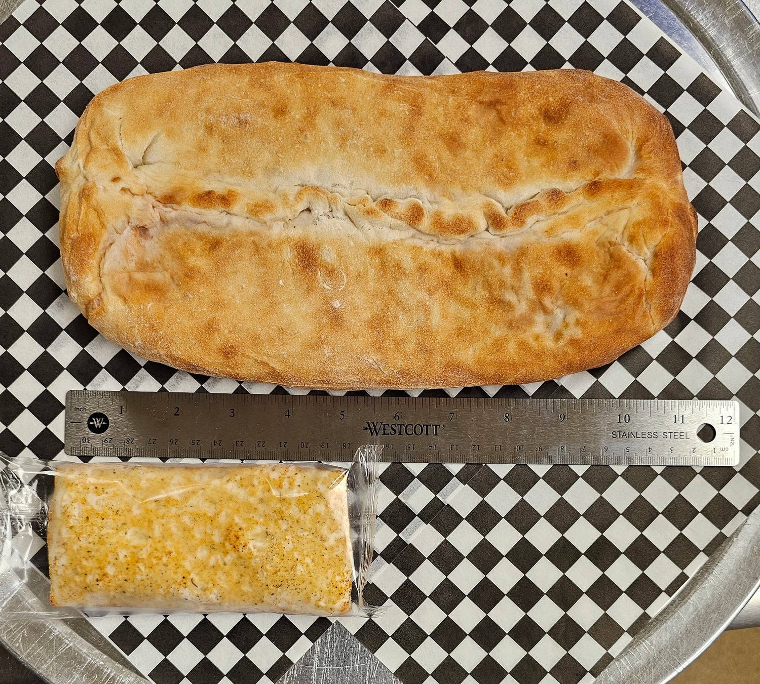 Just look how minuscule that hot pocket is compared our almost 12 inch long and 6 inch wide Marzella Stromboli.
